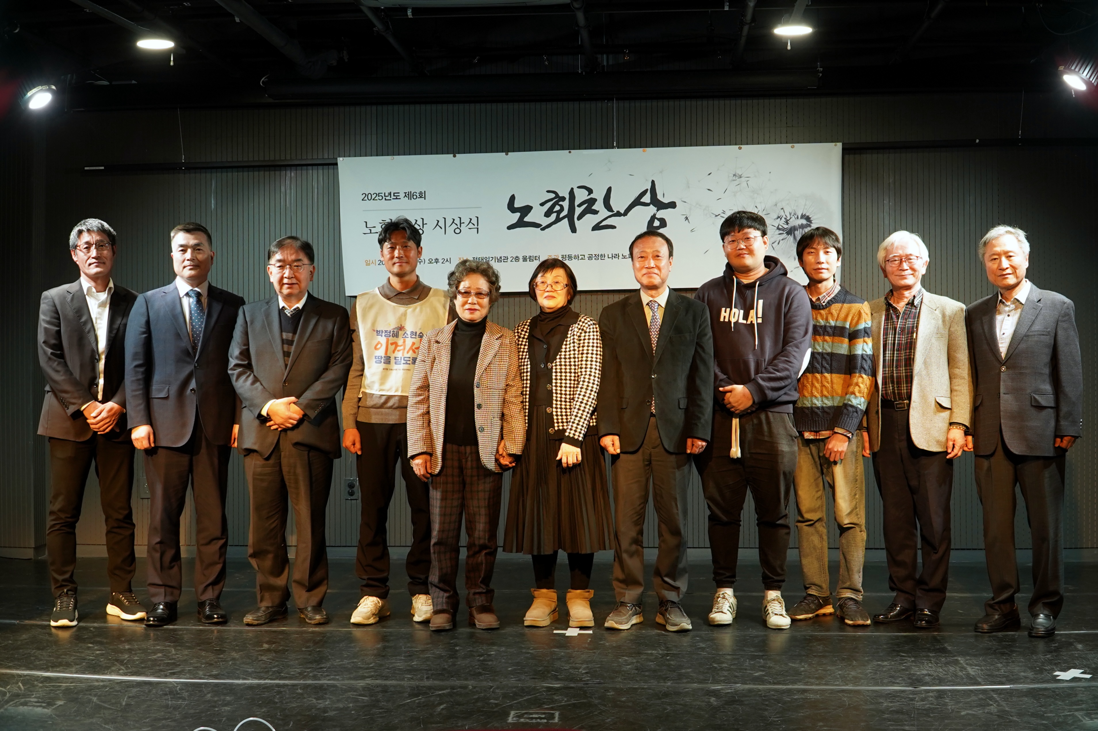 2. 노회찬재단은 노회찬의 뜻을 이어 ‘평등하고 공정한 대한민국’을 만드는 데 헌신해 온 개인과 단체를 발굴하고 격려하기 위해 매해 <노회찬상>을 시상해 오고 있습니다. 지난 노회찬상 수상자들은 ‘노회찬이 살아있었다면 지금의 어려운 현장들과 함께했을 것’이라며, 노회찬상을 ‘시민이 직접 수여하는 명예로운 훈장’으로 여기겠다는 소감을 나눴습니다.