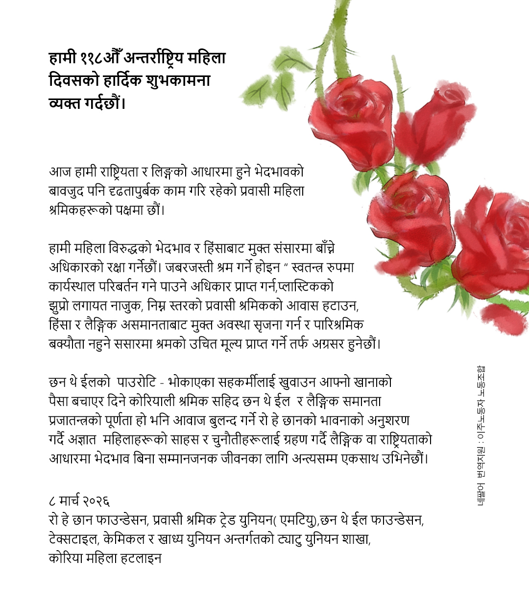 [노회찬장미] 3.8 세계여성의날 기념, 다국어 메시지카드