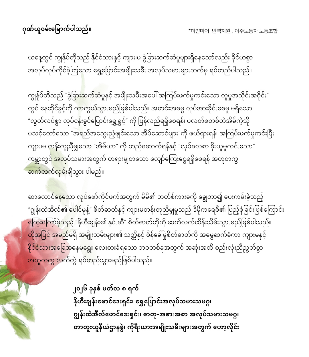 * 번역 및 감수에 특별히 도움을 주신 이주노조 관계자 여러분께 감사드립니다.