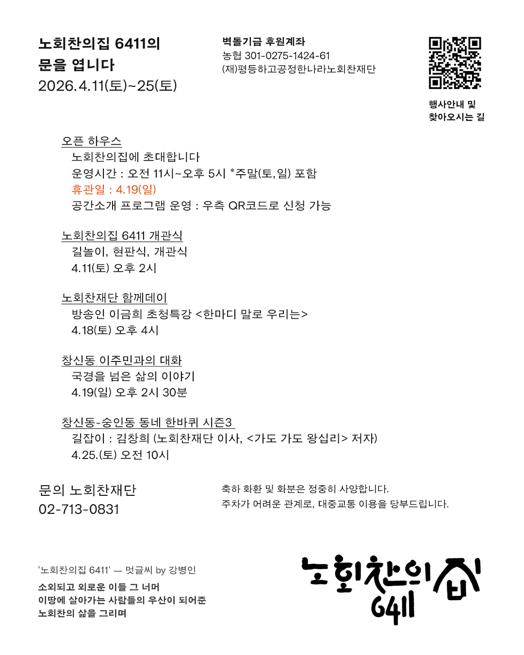 '노회찬의집 6411'의 문을 엽니다 (개관행사 안내)