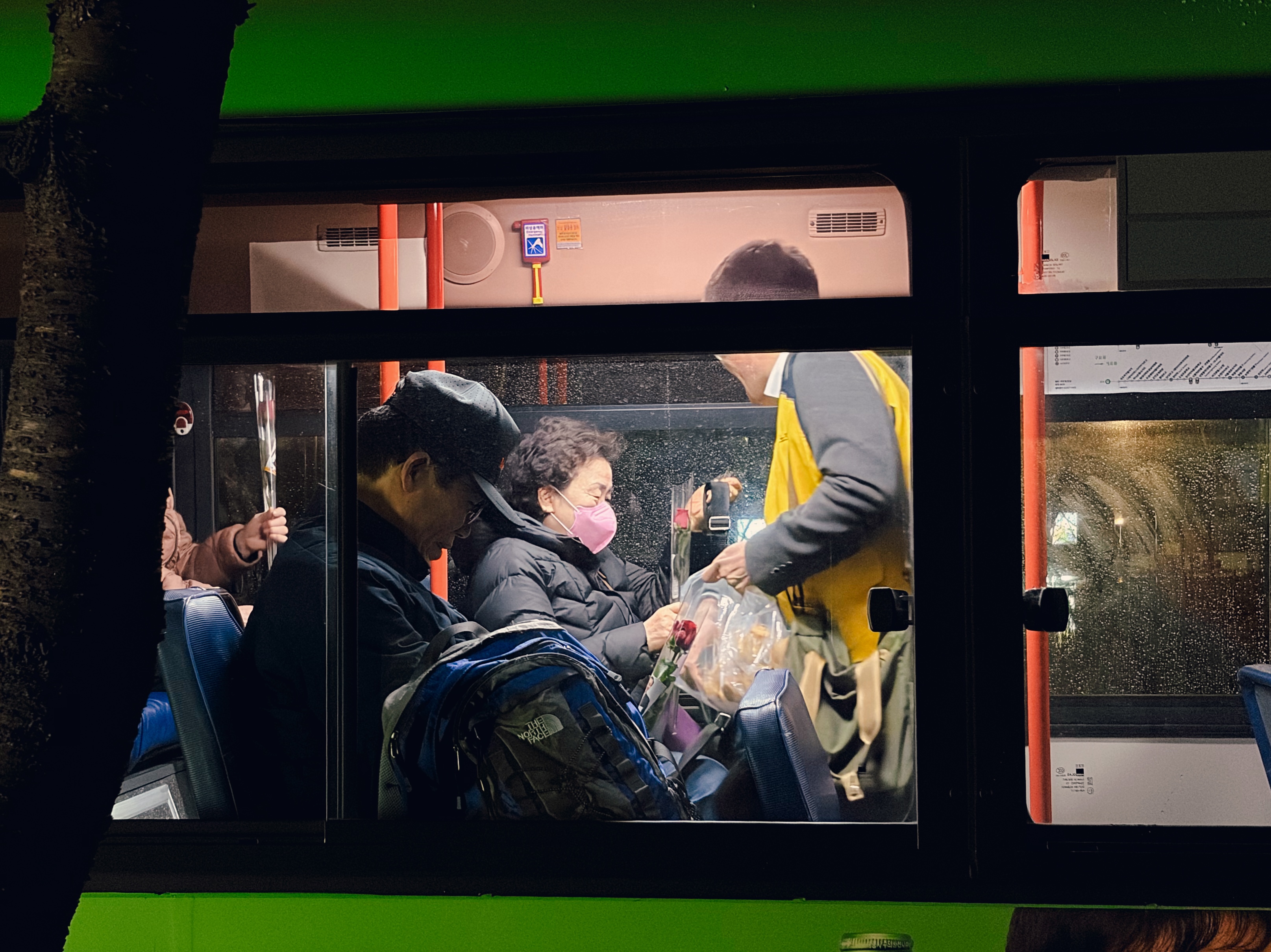 6411번 버스에서 고단한 하루를 시작하는 투명노동자들의 손을 장미꽃으로 맞이했습니다.