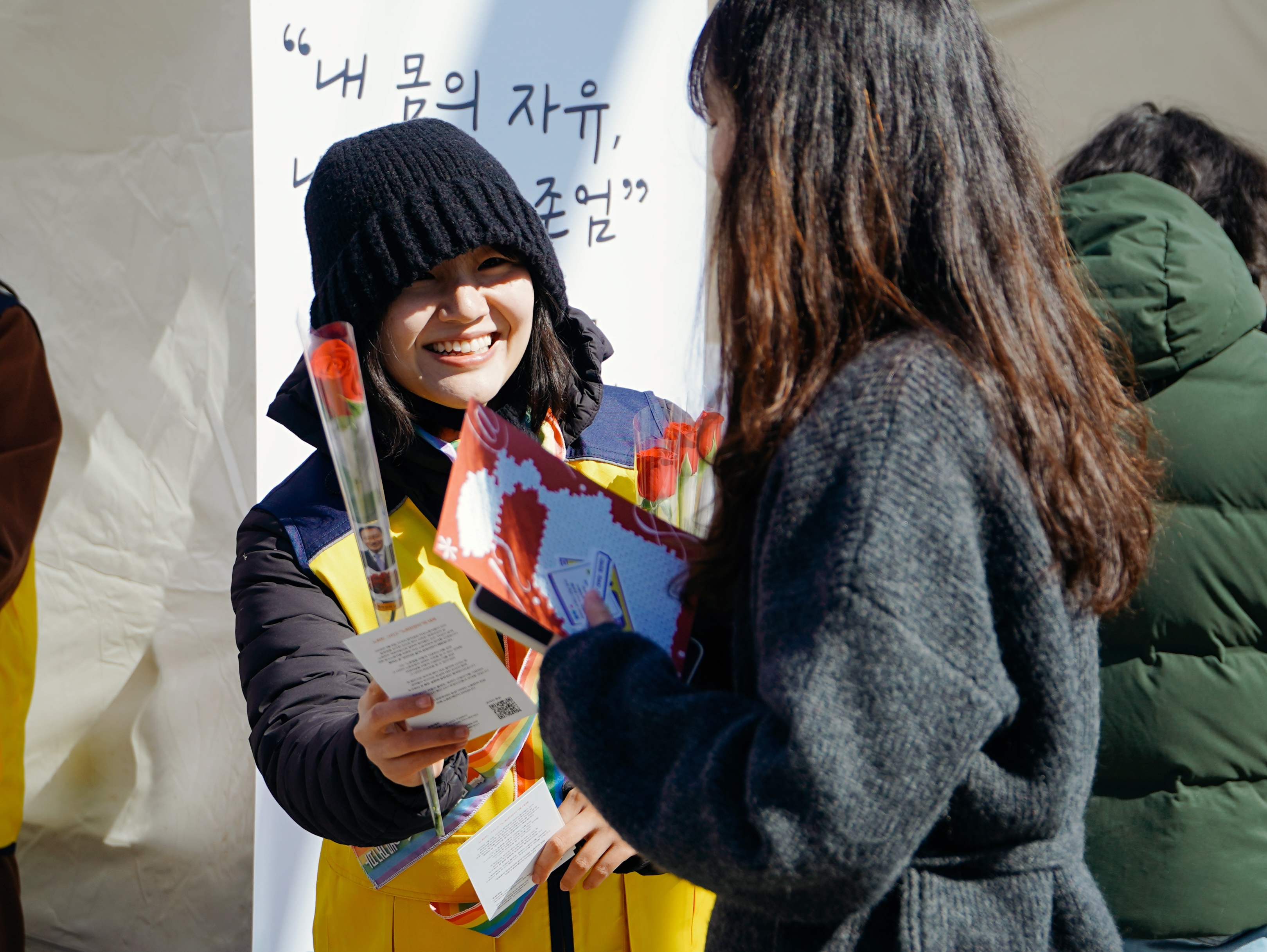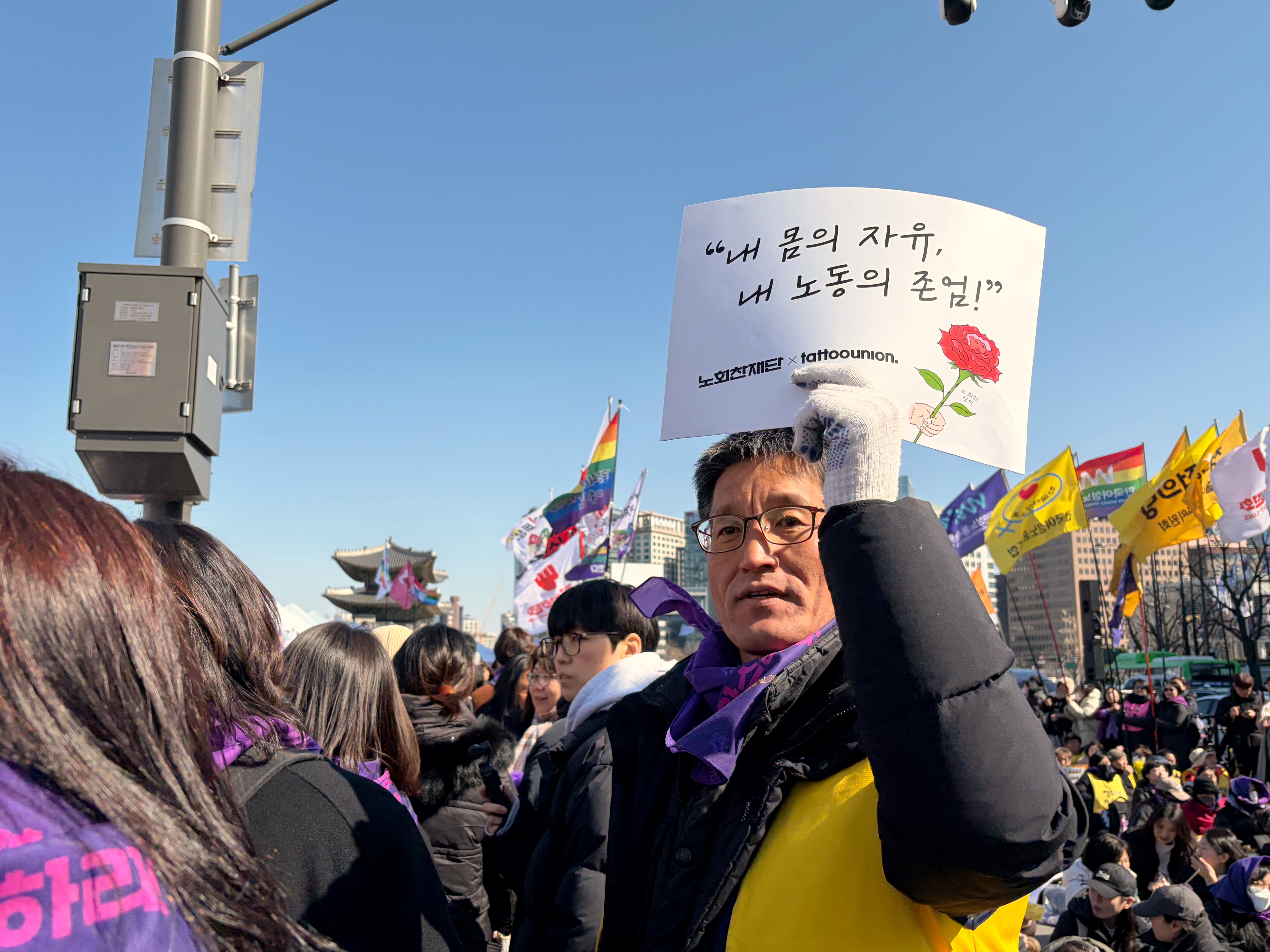 타투는 삶을 기록하는 예술이자 노동입니다. 노회찬재단과 타투유니온은 여성대회에 참석한 시민들에게 노회찬장미와 장미타투를 나눴습니다.