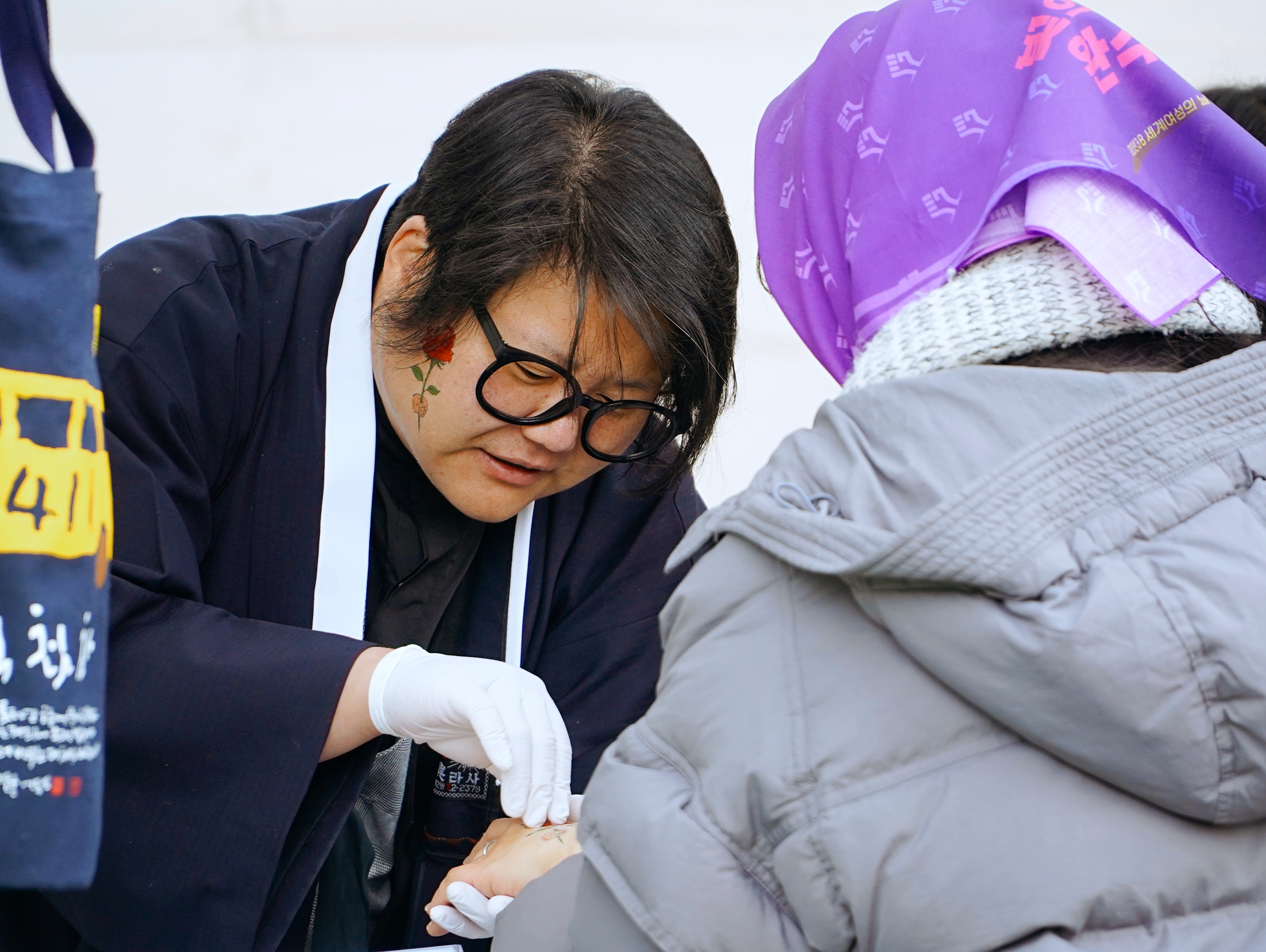 올해도 타투유니온은 타투스티커로 노회찬의 장미 나눔 캠페인에 함께했습니다. 여성의 날은 제가 매년 무료 타투 이벤트를 열었을 정도로 저 또한 중요하게 생각하는 날입니다. 처음으로 이벤트를 열었던 2019년에만 해도 여성의 날을 기념하는 사람이 지금만큼 많지는 않았던 것 같아요. 여성의 날을 언급하는 것이 조금은 두렵기도 했던 때였습니다.