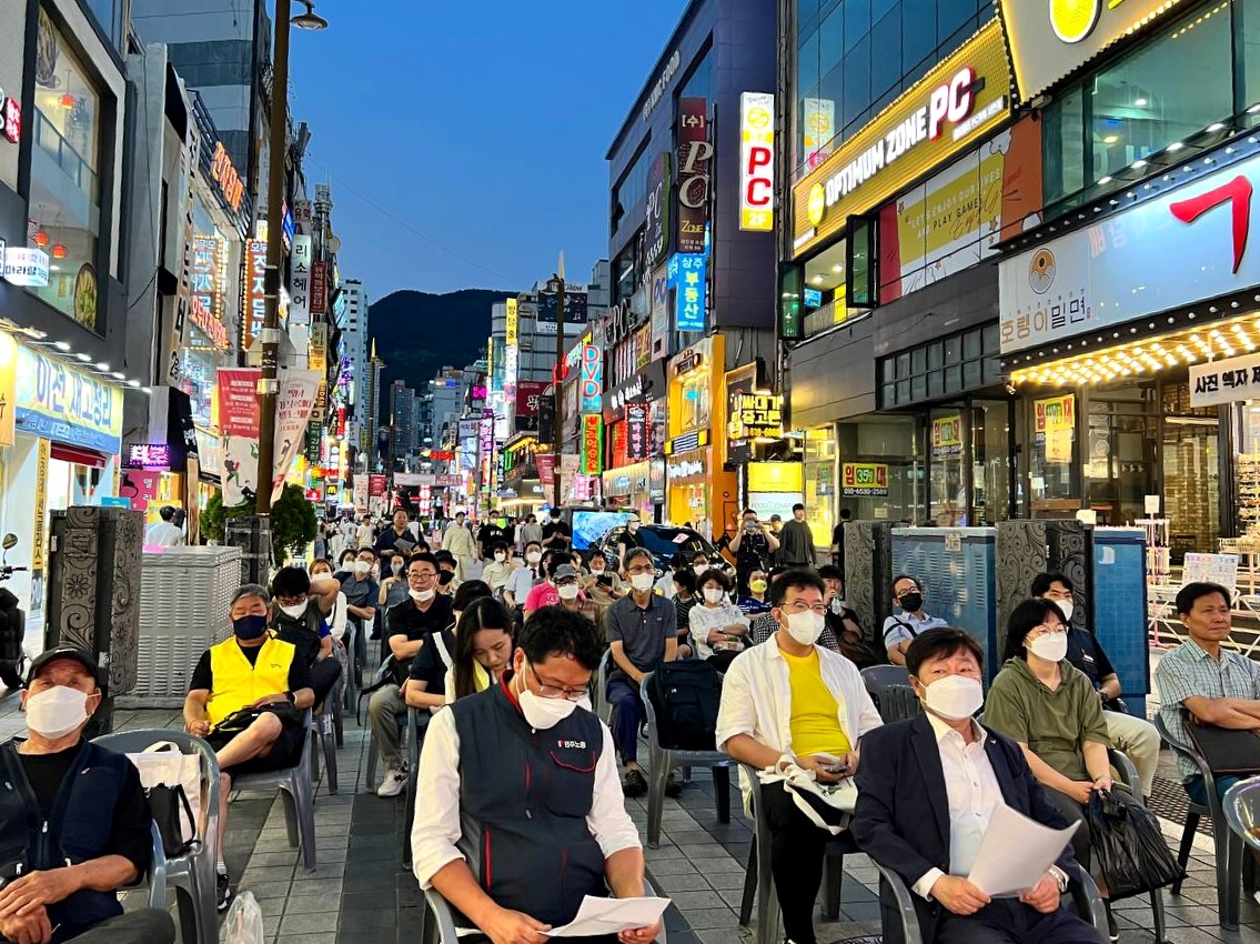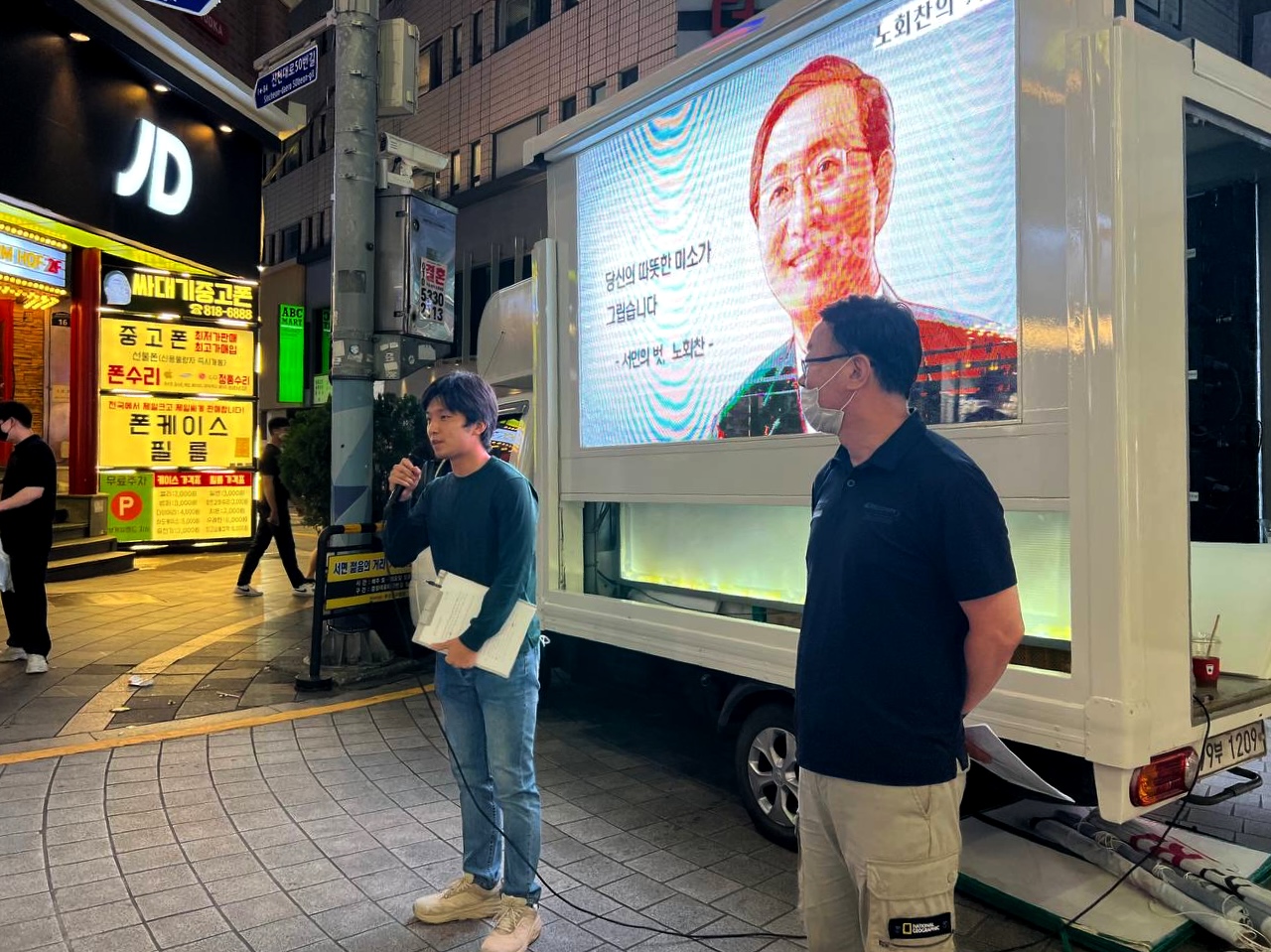 정의당 부산시당과 부산지역 회원들은 7월 22일(금) 서면 쥬디스태화 앞에서 노회찬 의원 서거 4주기 추모 행사 ‘노동자 노회찬을 그리며’를 개최하였습니다. 영상 상영 및 행사장 주변에서 선전전에 이어 추모제를 진행하였습니다.