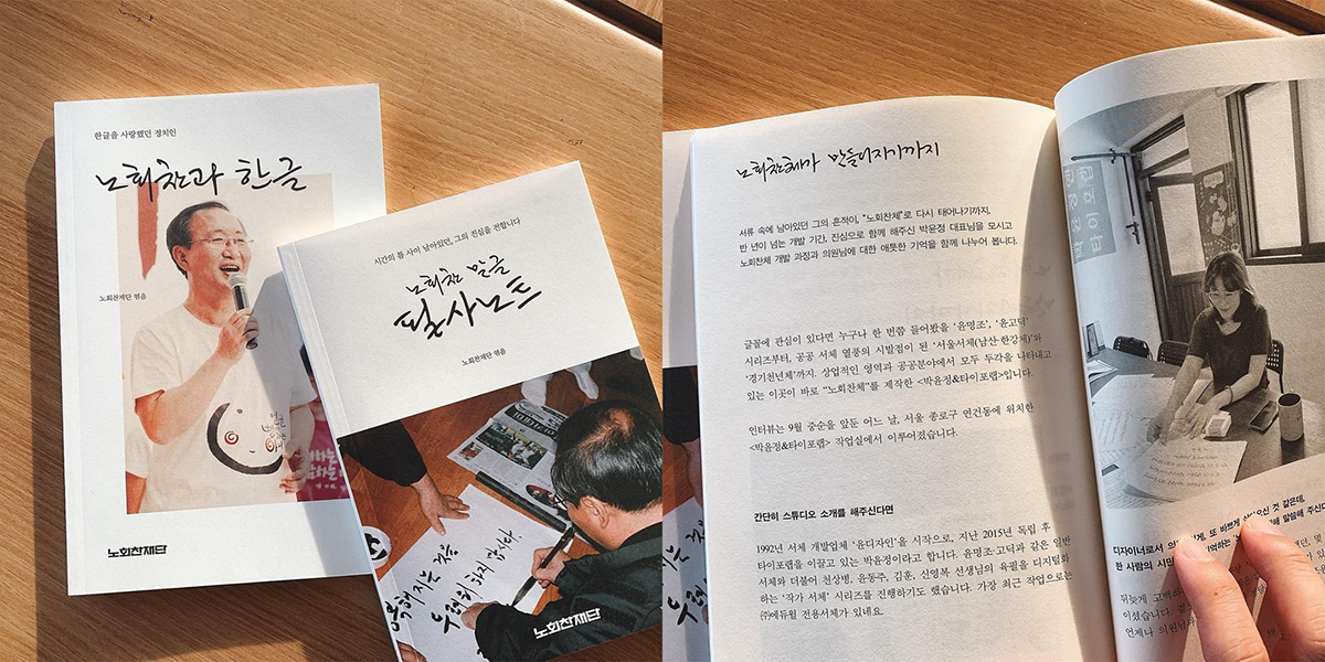 한글날을 맞아 '노회찬'과 '한글'에 얽힌 뜻깊은 일화들을 <노회찬과 한글>이라는 이름의 소책자로 엮었고, 그가 남긴 말글 중 마음에 새겨도 좋을 만한 것들을 추려 <필사노트>를 함께 묶었습니다. 두 권의 책은 '노회찬체'가 쓰인 첫 번째 인쇄물이기도 했지요. 해당 프로젝트는 크라우드 펀딩을 통해 성공리에 마무리 되기도 했습니다.