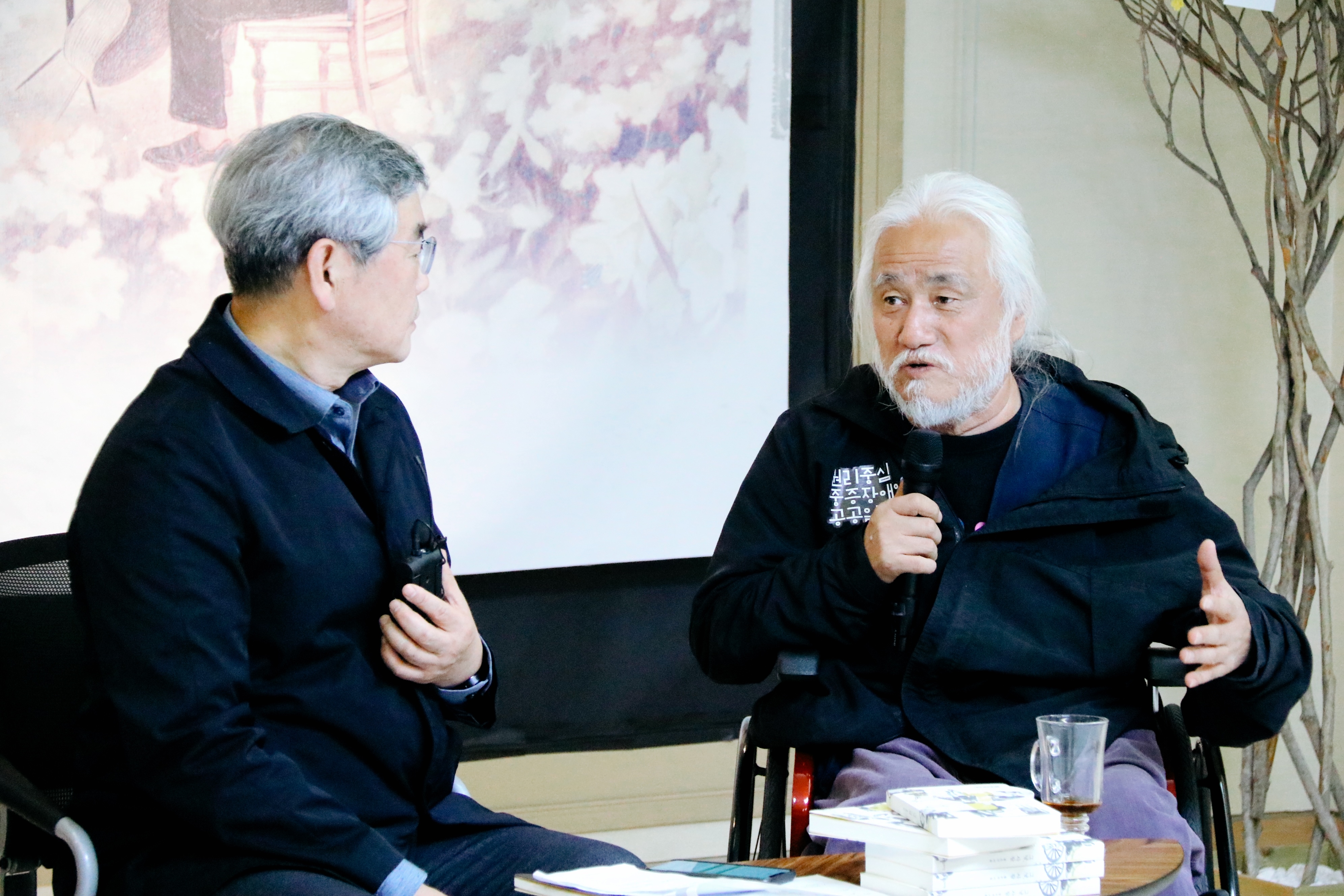 제가 의원님이 아니기에 그 어떤 해석도 그분과 동일할 수 없을 것입니다. 하지만 의원님의 발자국을 따라가며, 그 발자국이 맴돌던 곳에 찾은 흔적은 이것이었습니다. ‘함께 맞는 비’. 권력과 사회를 향해 극단의 선택을 하지 않고는 목소리를 전할 수 없던 사람들과 함께 비를 맞으며 그 이야기를 듣고, 권력과 대다수를 향해 전하려던 의원님의 태도. 이번 강연은 그런 ‘함께 맞는 비’를 실천하는 시간으로 만들어야겠다는 시도였습니다. 박경석 선생님과 장애인 활동가들이 지하철을 멈춰 서게 만드는 선택을 하면서 우리 사회에 전달하고 싶던 이야기와 외침이 무엇일까를 들으려 하는 것이, 그 흔적의 의미라 생각했습니다.