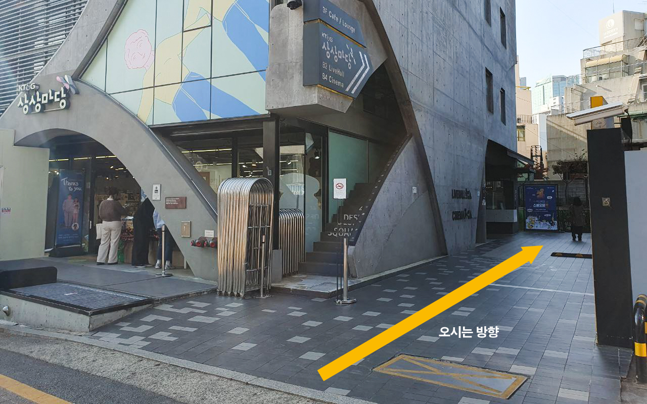 해당건물은 복합문화공간으로서, 다양한 시설이 한 곳에 모여있습니다. 공연이 진행되는 '라이브홀'은 지하2층에 위치하고 있으며, 아래 사진을 참고하여 찾아오시면 쉽게 찾으실 수 있습니다.