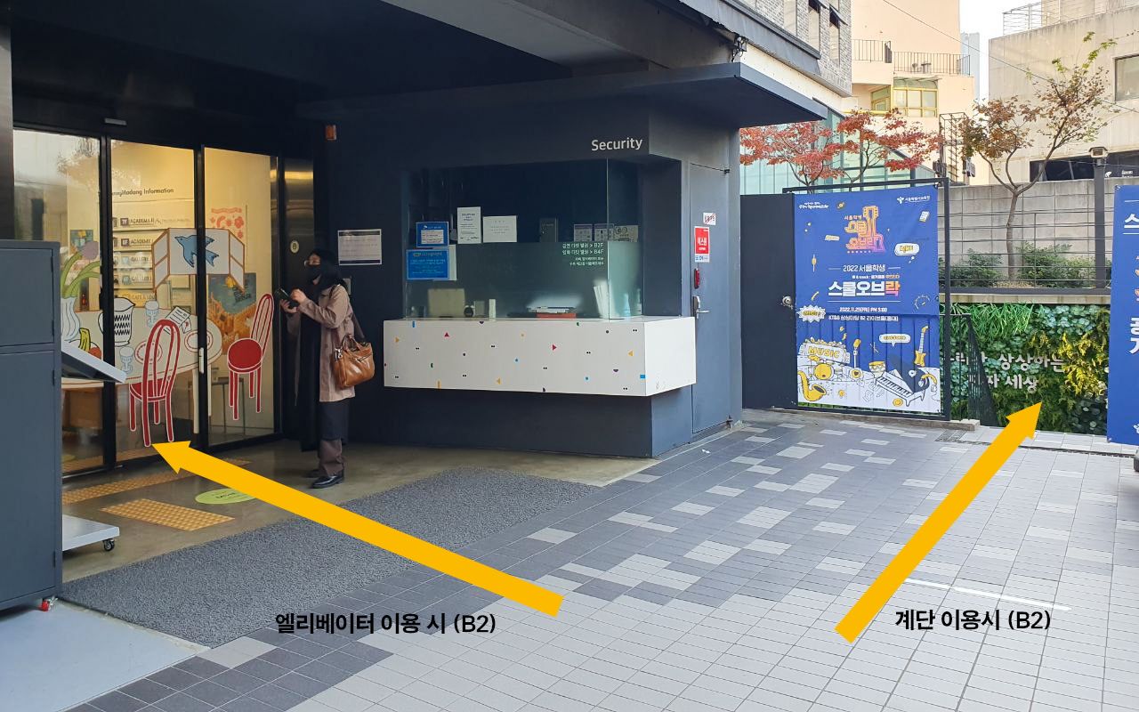 * 엘리베이터 / 계단 이용시 진입 방향이 다르므로, 참고 부탁드립니다.