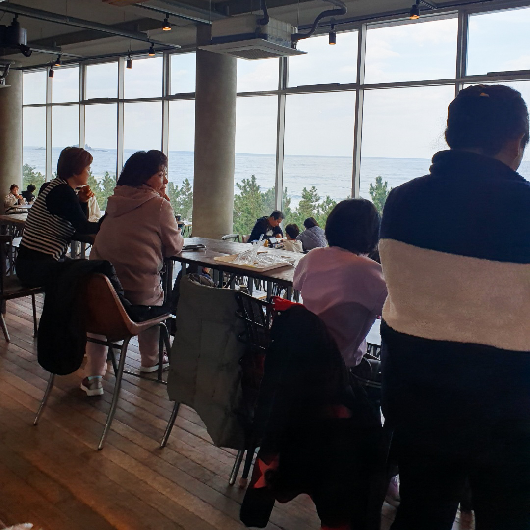 먼저 식사를 하고 바다가 쭉 펼쳐진 곳에 멋진 테이블이 즐비한 카페에서 바다를 보며 맛있는 커피와 빵을 먹고 마시고 있으니 시간이 멈췄으면 하는 생각이 들 정도였다. 바다에서 친정 언니들과 사진을 찍고 깔깔거리며 웃으며 마치 어린아이로 돌아간 것처럼 뛰어다녔다. 바다를 보고 김일성별장으로 향했다. 너무나 멋진 곳에 이국적인 건물이 있어서 놀랐고, 거기에 담긴 역사가 흥미로웠다. 별장 앞에 펼쳐진 바다, 호수, 숲이 어우러진 장관을 보고 계속 감탄을 했다. 화진포 생태박물관 앞에서 단체사진을 찍을 때 서로의 웃는 얼굴을 보니 행복했다.