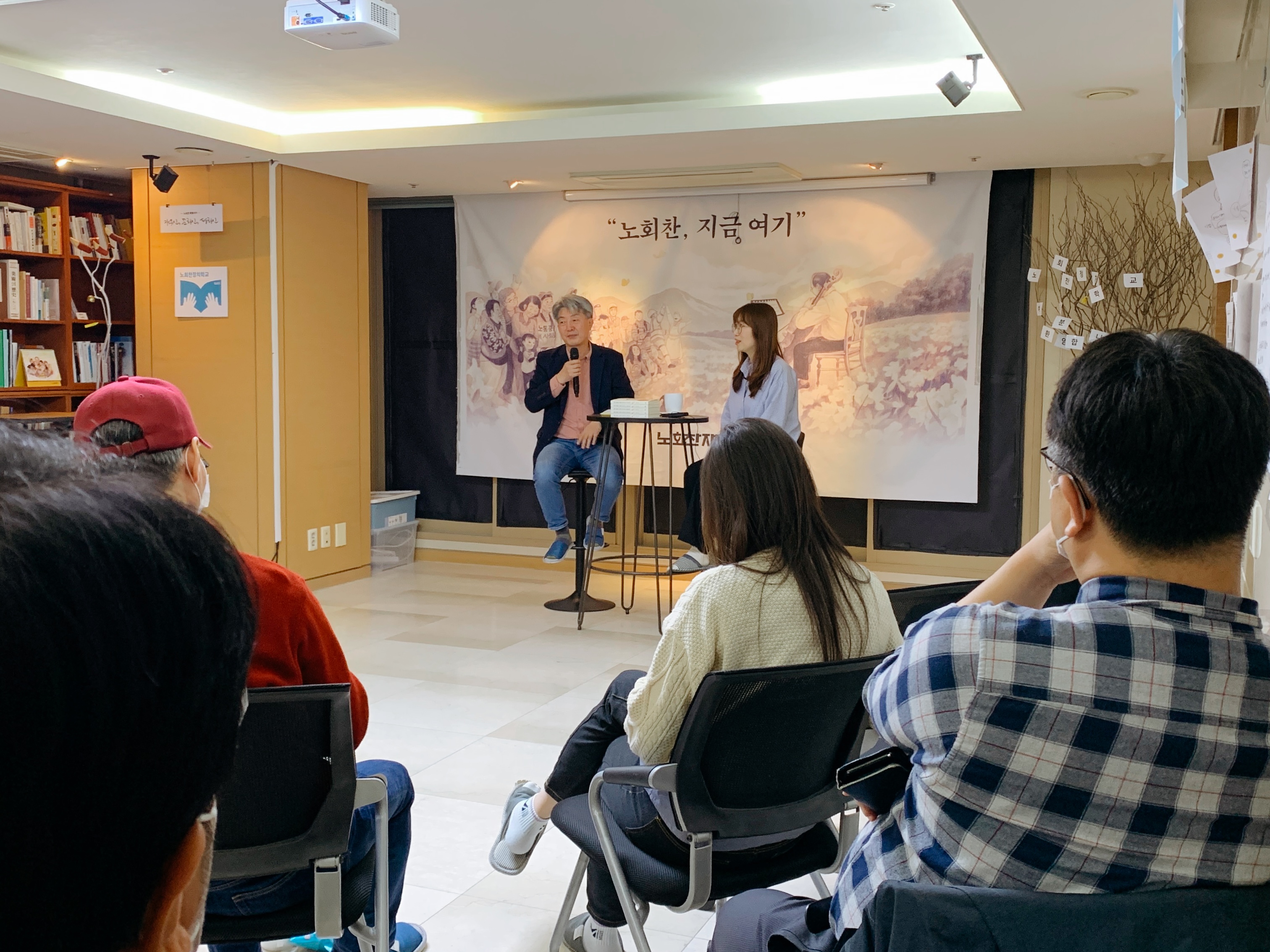 그날 강연장에 오신 20명 가까운 회원들의 모습이 어렴풋이 기억난다. 대부분 50대 또는 60대 이상의 나이든 분들이었는데, 20대 대학생도 서너명 눈에 띄었다. 아마 학교에서 수업 과제로 진보와 보수와 관해서, 또는 진보란 무엇인가에 관해서 정리하는 작업을 부여받은 듯했다. 그 친구들에게 <진보를 찾습니다> 책에 서명을 해주면서, 이 책에 담긴 두 주요 정치인, 노무현과 노회찬의 진보 고민이 낡아서 말라비틀어진 꽃이 아니라 여전히 생명력을 가진 억센 풀로 젊은 친구들에게 남았으면 좋겠다는 생각을 했다. 이런 강연의 자리를 마련해준 노회찬 재단에 깊은 감사를 드린다.
