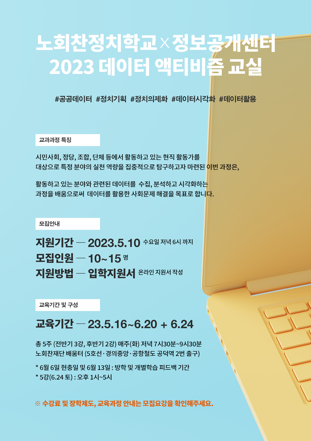 노회찬정치학교x정보공개센터 <2023 데이터 액티비즘 교실> 모집안내