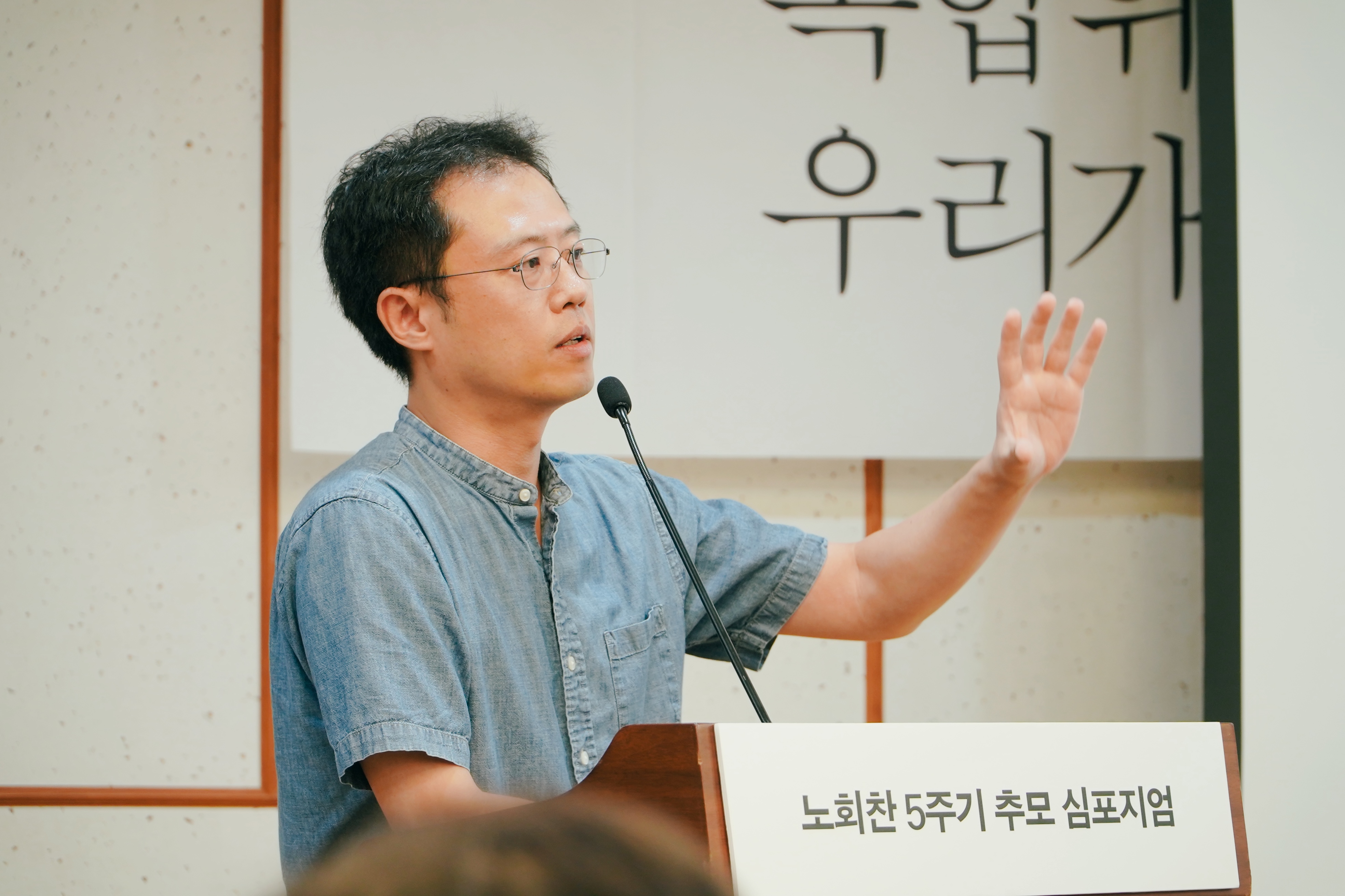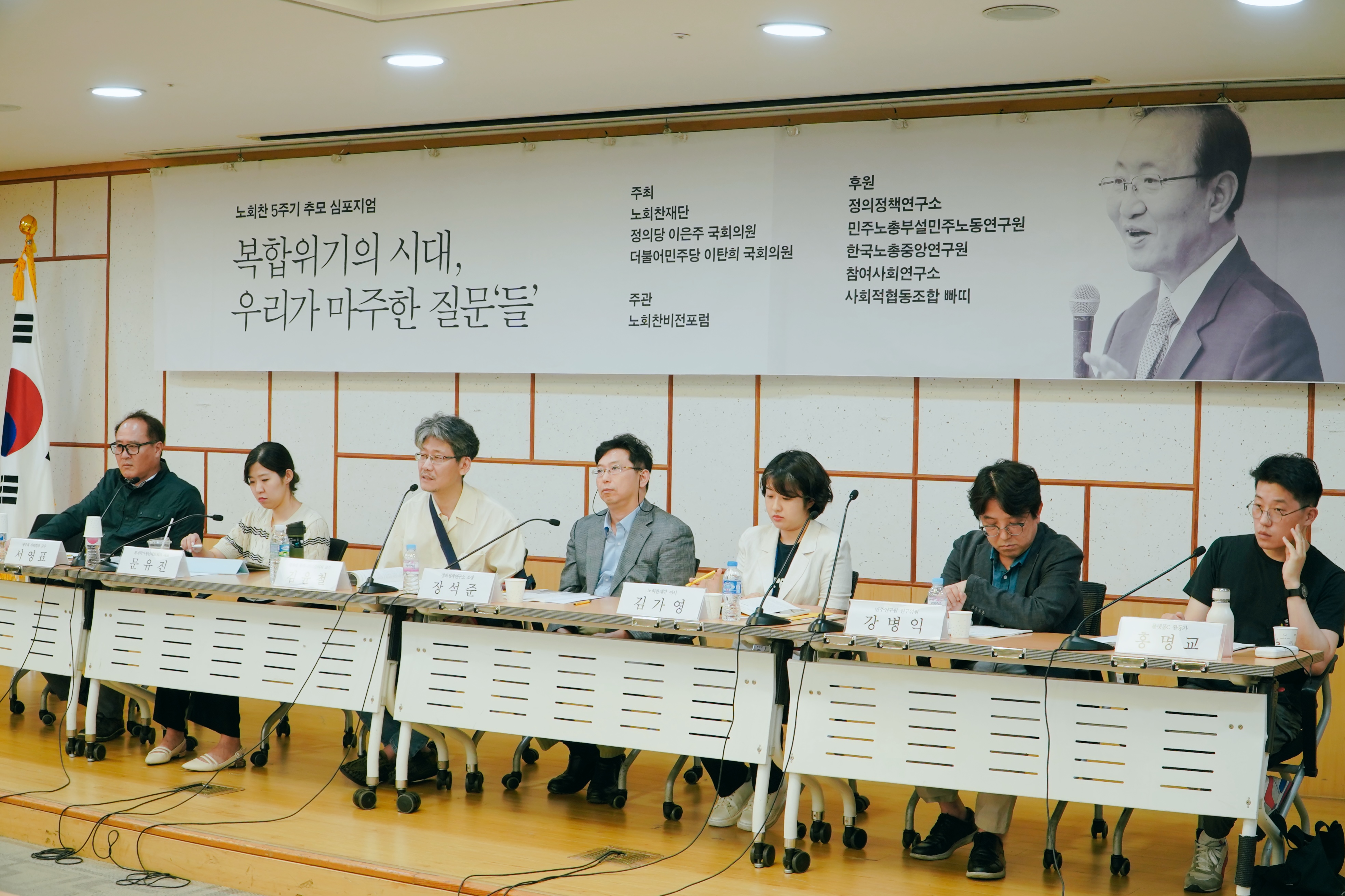 노회찬비전포럼이란 이름 아래 모여 같이 토론하면서 심포지엄을 준비해온 포럼 멤버들, 소중한 시간을 내서 사회자, 주제발표자, 지정토론자로 참여해주신 분들께 감사의 인사를 전합니다. 또한, 작년 4주기 정책토론회에 이어 올해에도 공동주최를 함께 해준 이은주, 이탄희 의원님, 기꺼이 공동후원을 해 준 정의정책연구소와 민주노총부설민주노동연구원, 한국노총중앙연구원, 참여사회연구소에게도 고맙습니다. 특히, 사회적협동조합 빠띠와 오마이TV 덕분에 더 많은 분들에게 우리의 고민이 전달될 수 있었습니다. 감사합니다.
