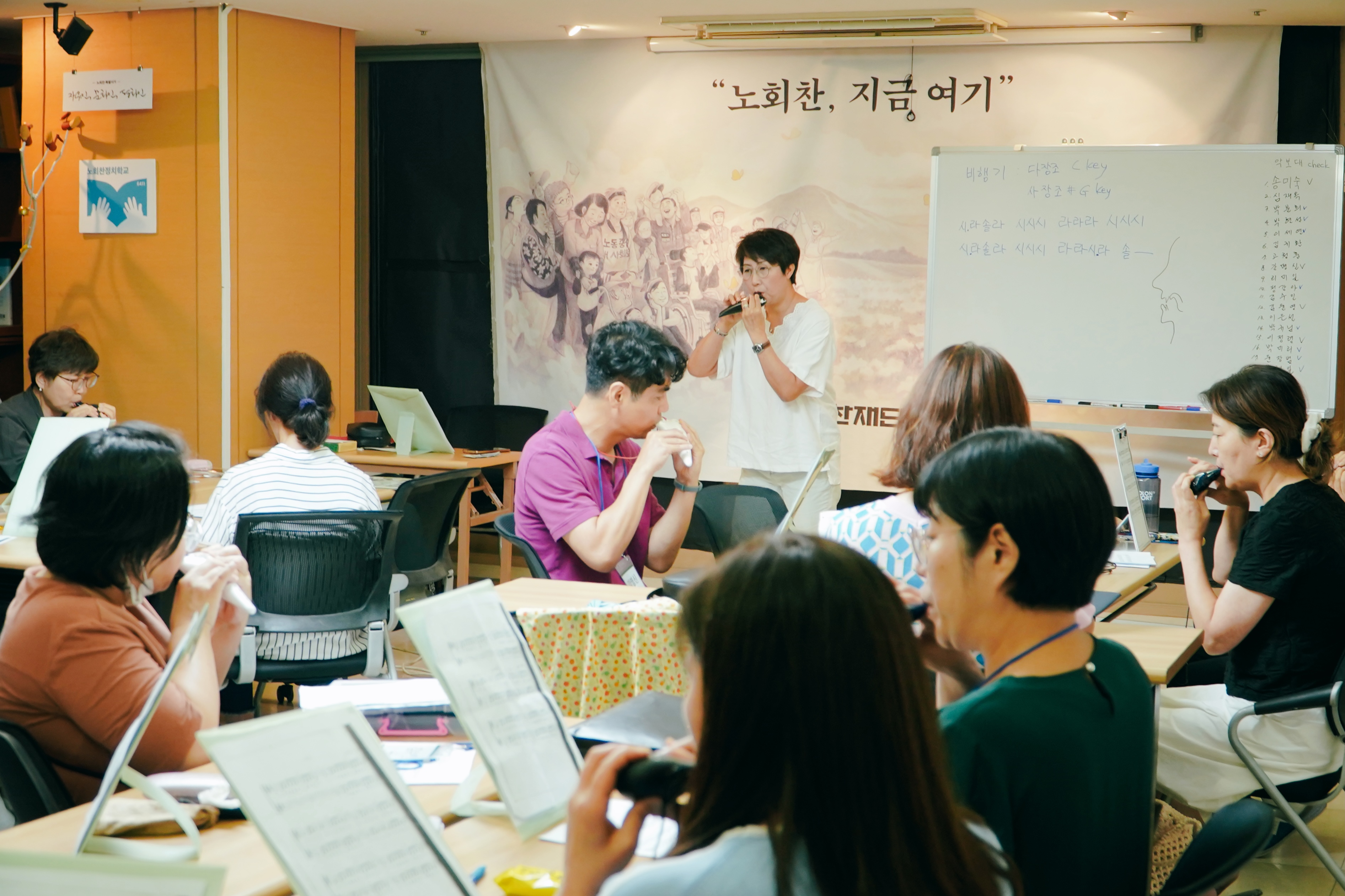 수강생들은 소감나누기 시간을 통해 ‘누구나 악기 하나쯤은 다룰 수 있는 평등한 문화예술 활동 기회를 부여해준 노회찬재단에 감사하다고 입을 모았습니다. 총9강을 마치게 되는 10월 말쯤 졸업발표연주회도 갖자는 요구도 높습니다. 후속으로 오카리나 중급반, 우크렐라, 그리고 노회찬의원이 잘 연주하셨던 첼로까지 배우자고 의욕이 마구마구 넘쳐납니다.