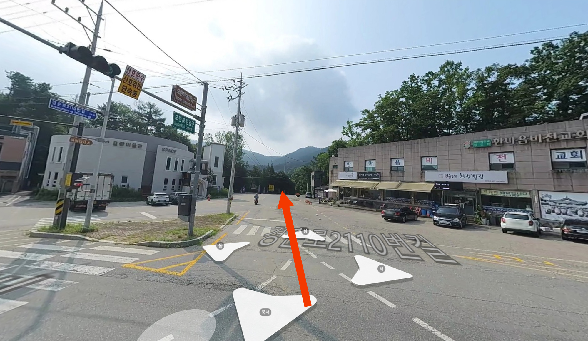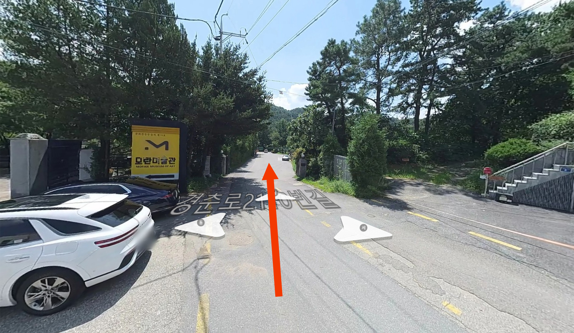 2. 모란미술관을 지나 화살표 방향으로 계속 직진합니다.