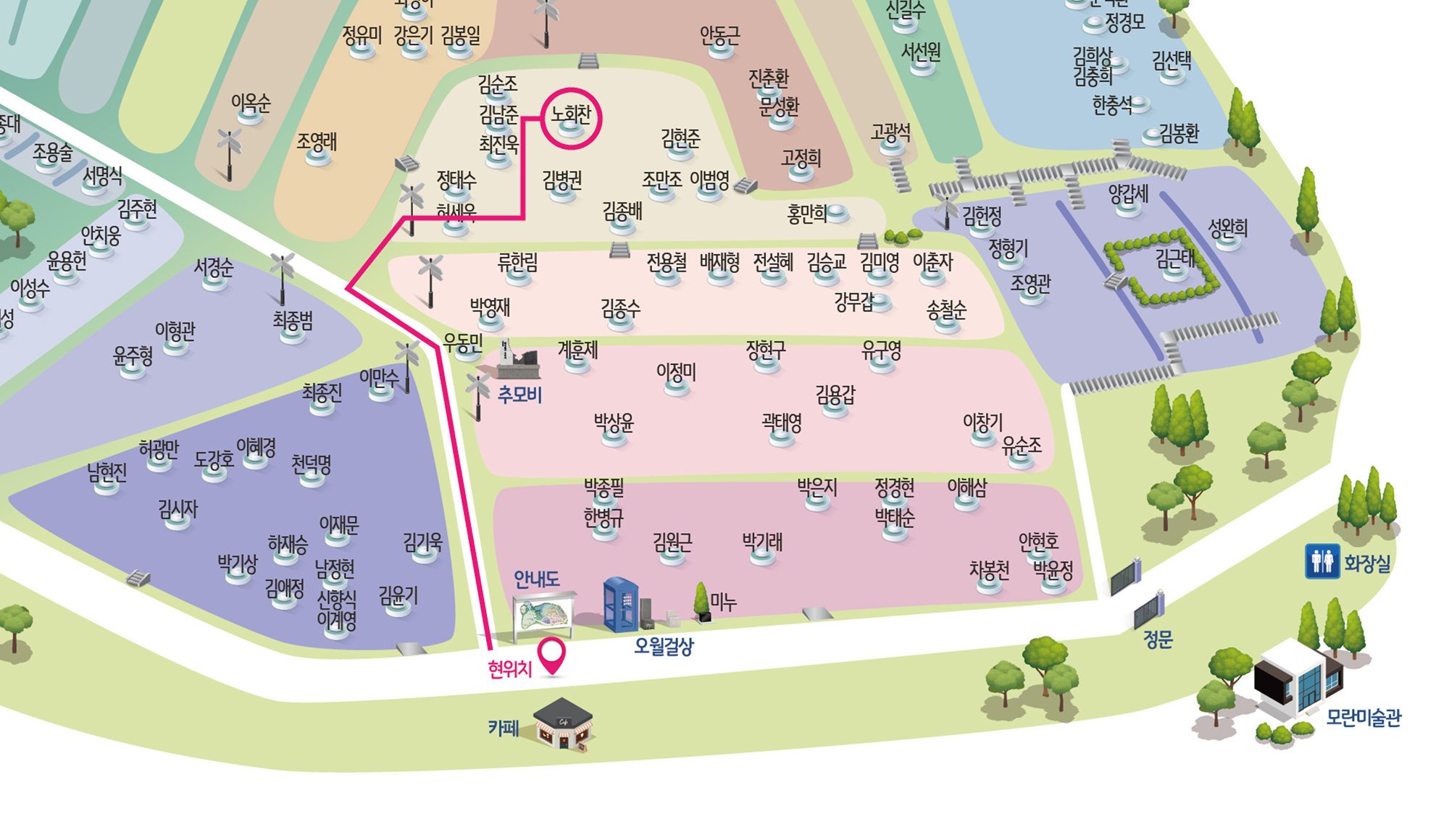 4. 아래 묘역도에 따라 묘소 방문이 가능합니다.