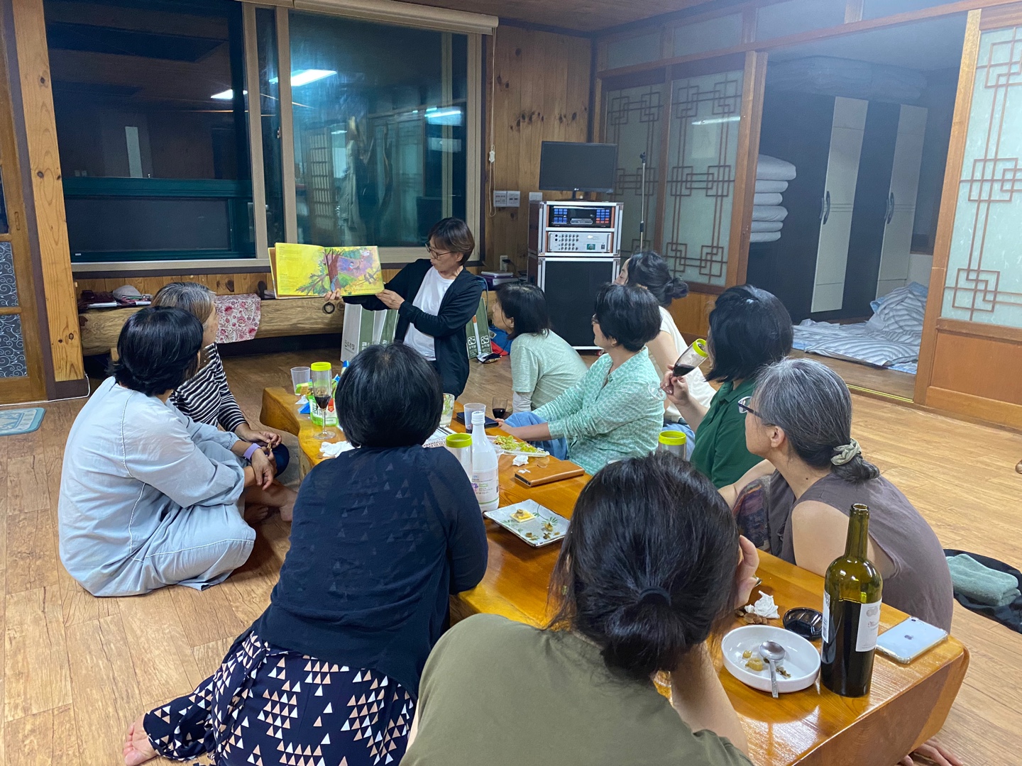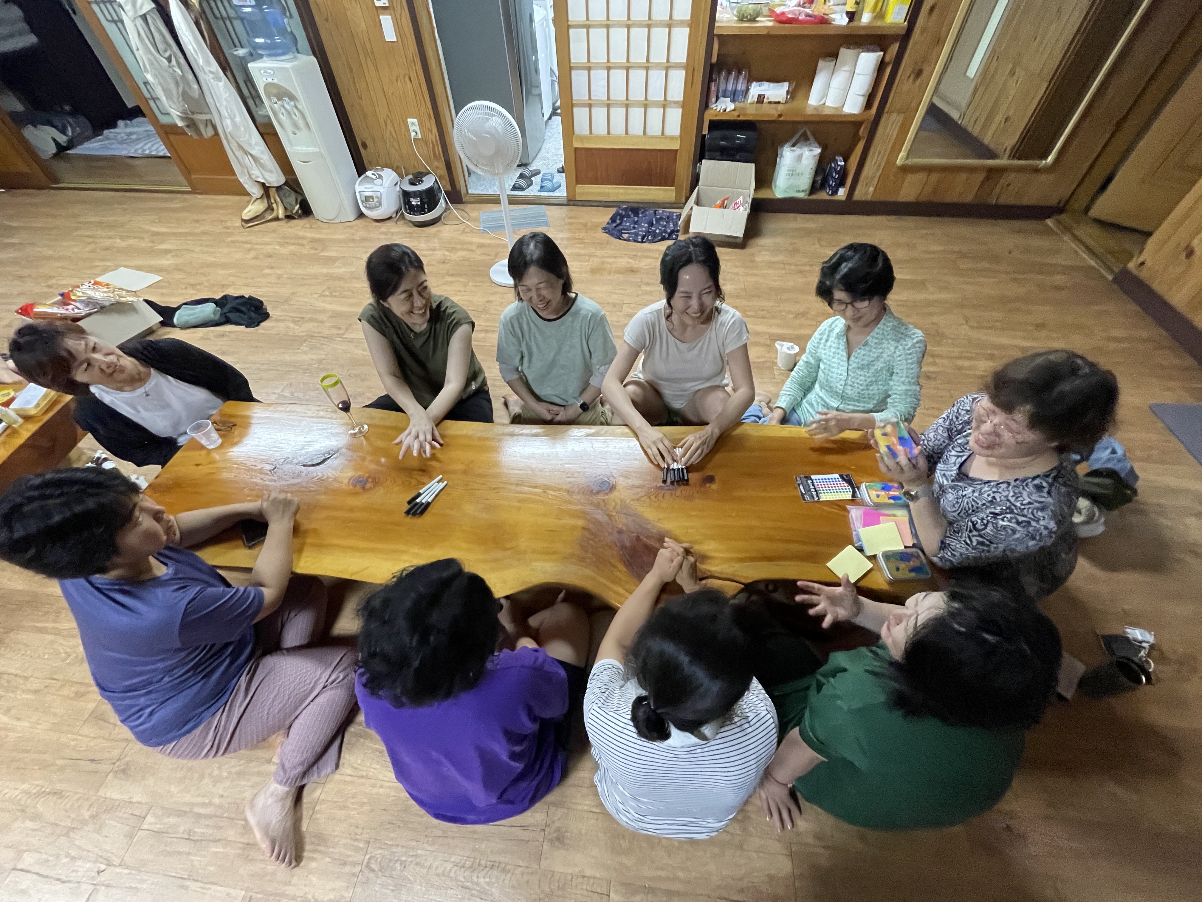 배를 탕탕 두드리며 다시 숙소로 도착해서 소화도 시킬 겸 또 다시 숙소 앞 오솔길을 산책한 후, 본격적으로 모두가 함께 한잔 기울이며 지역활동에 대해 이야기하는 시간을 가졌습니다. 한 분이 ‘다니엘이 시를 만난 날’이라는 이번 여행에 어울리는 그림책을 가져와 낭독해주셨어요. 풀바람에서 제작·진행하고 있는 ‘조직문화· 젠더감수성 카드 워크숍’에 참여하는 시간도 가져보았습니다. 다음 날 아침, 오솔길을 맨발걷기하며 빙글빙글 산책하고 강원도의 푸르른 경치를 감상하며 브런치를 먹었습니다. 그리고 삼봉약수터에 가서 건강을 기원하며 약수도 마셔보았습니다. 원래 계획한 일정은 여기까지였지만 모두들 그냥 돌아가기 아쉬워해 평창에 있는 허브나라농원에도 가보았습니다. 허브 향기를 맡으며 산책하고 서로 도란도란 이야기도 많이 나누었지요.