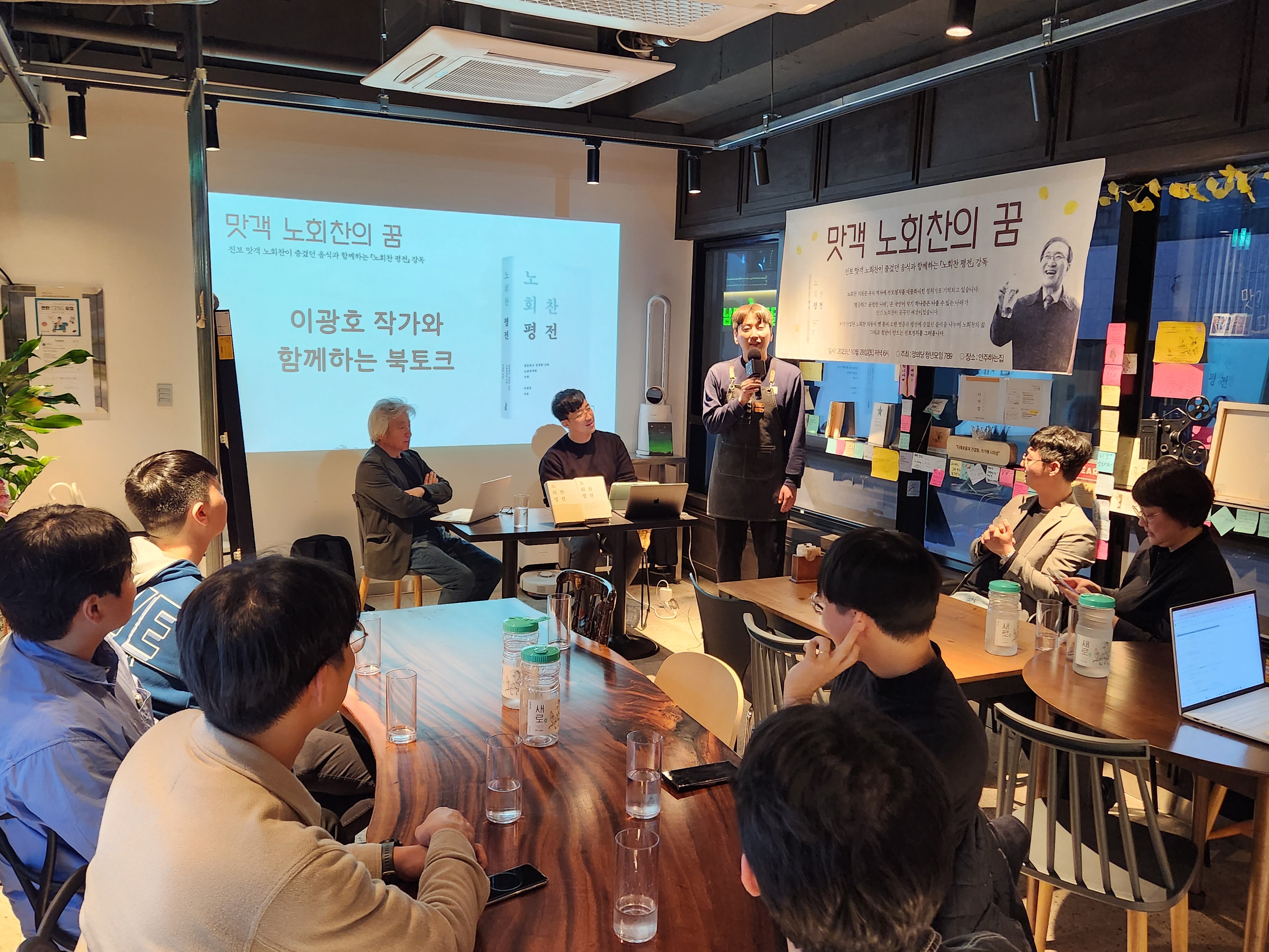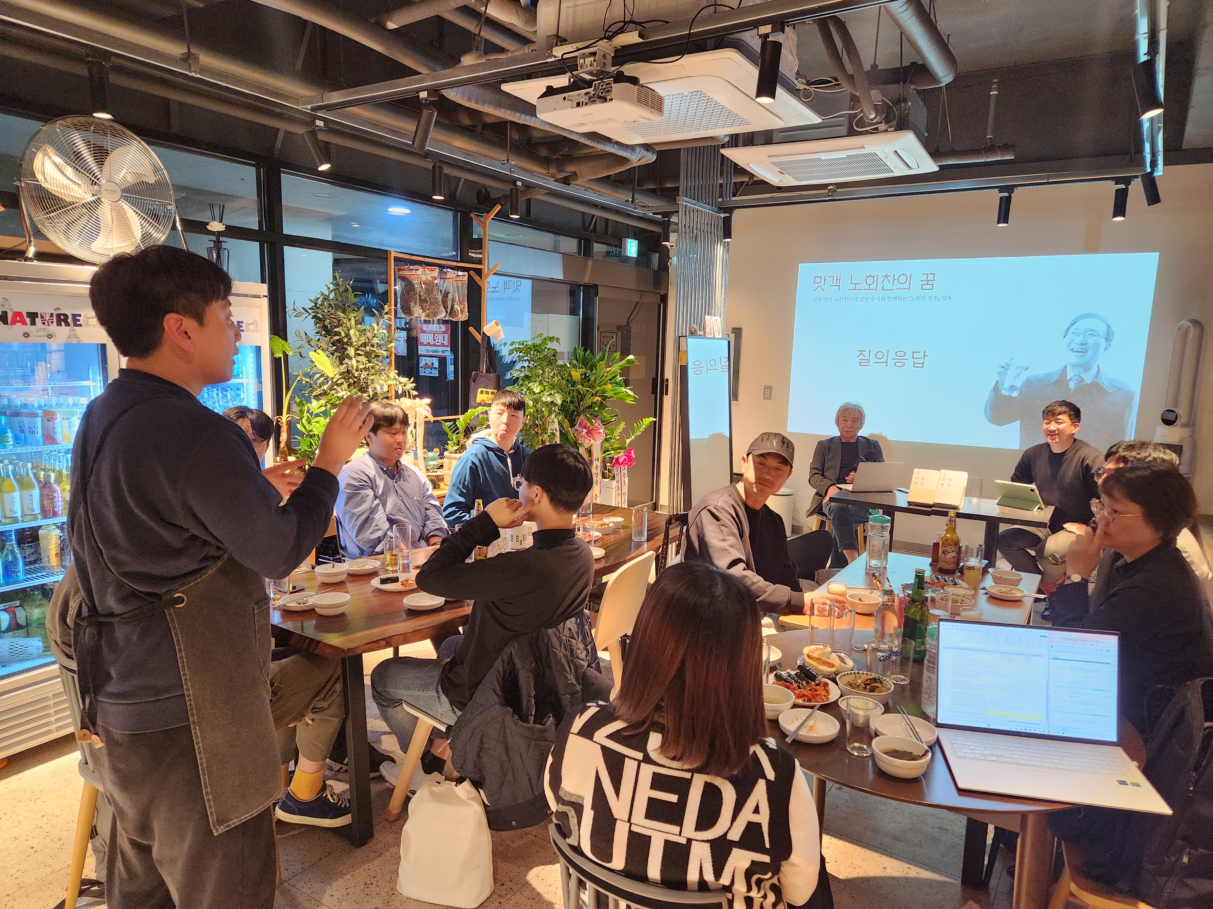 <맛객 노회찬의 꿈>, 정의당청년모임 ‘789’가 주최하는 행사였다. ‘사적 친목회’임을 유독 강조하시던데, 이분들의 기획과 진행 실력은 믿을 만하다. ‘<노회찬평전> 북토크, 이광호 작가와 청년이 모이는 자리, 노회찬 의원의 서사가 있는 음식과 하는 행사’를 하려는데, 우리 가게를 대관하고 싶다고, 9월 첫째 주에 문의를 주셨다. 행사는 10월 28일 토요일이다.