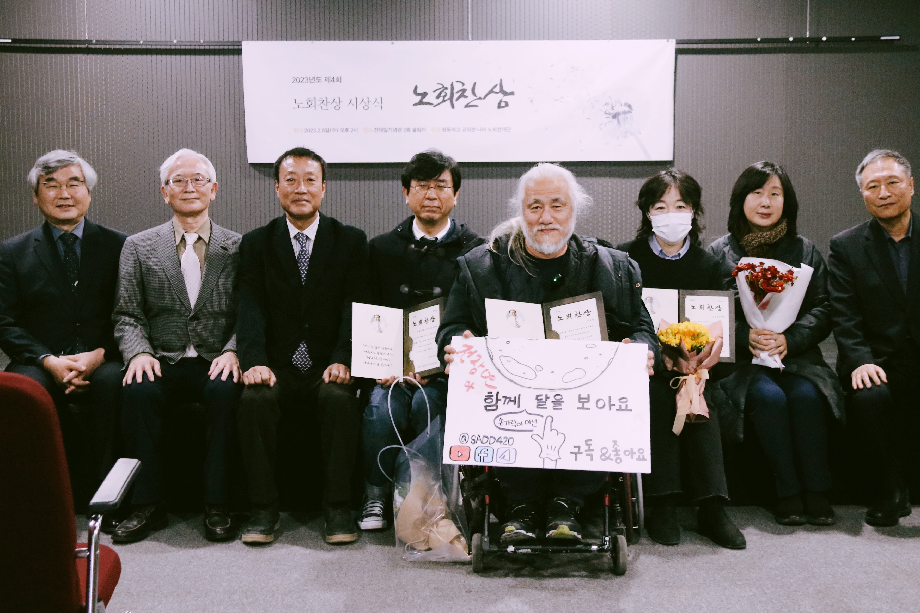 제 4회 노회찬상 수상자로 전국장애인차별철폐의 <박경석 대표>를 선정하였습니다. <박경석 대표>는 갇히고 고립되어 있던 이들이 쇠창살을 뚫고 거리로 나와 자유를 호흡하고, 자기 목소리를 빼앗긴 이들이 목소리를 낼 수 있도록 했습니다. 장애인에 대한 효율, 능력 중심의 신자유주의적 접근방식이 지배하는 세상에서, 이를 거부하고 기본권적 권리 관점에 갇히지 않는 장애인 운동을 하고 있다는 점에서, <박경석 대표>의 생각은 ‘새로운 세상’을 꿈꾸었던 노회찬의 생각과도 맞닿습니다.