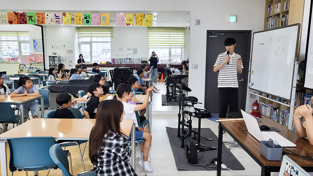 그런 저희 나눔터에 지난여름, 아주 특별한 선물이 도착했습니다. 바로 2025년 노회찬 재단 희망악기 지원사업에 선정되어 받은 전자 드럼과 키보드입니다. 이 악기들은 단순한 물품 그 이상의 의미를 지니고 있습니다. 이 악기들 덕분에 우리 아동들의 일상은 새로운 활기로 가득 차올랐습니다. 예상치 못한 이 선물은 우리 아이들의 삶 속에 깊이 스며들며, 그들에게 음악이라는 또 하나의 꿈의 문을 열어주었습니다.