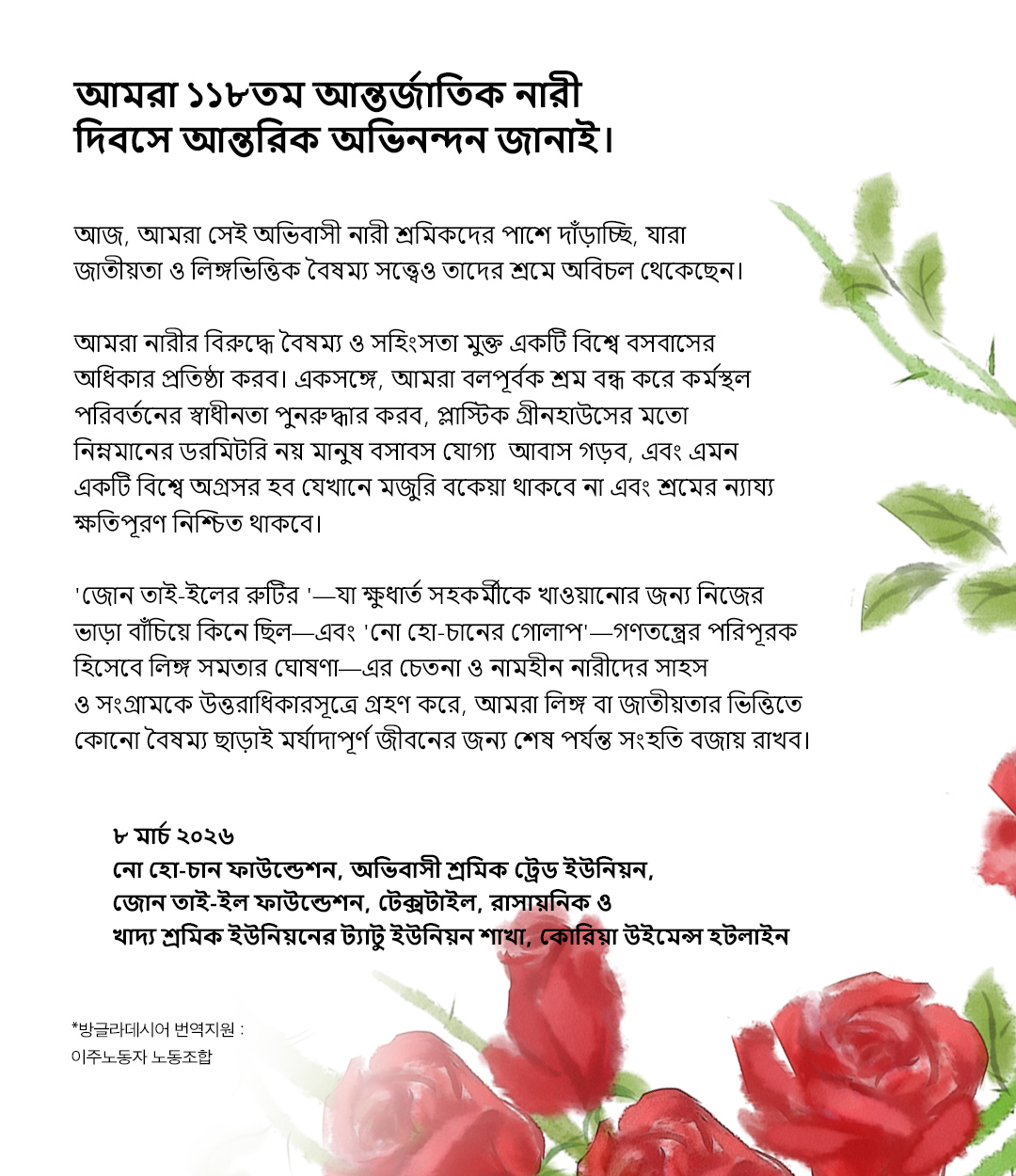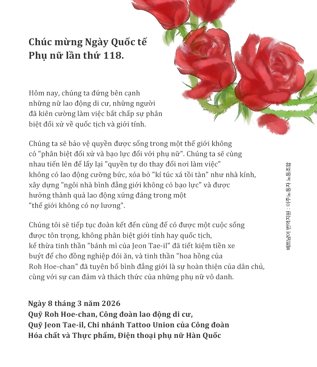 [노회찬장미] 3.8 세계여성의날 기념, 다국어 메시지카드