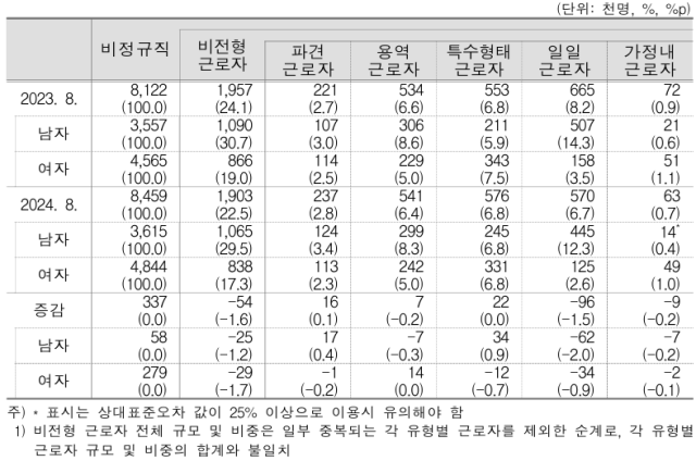 ▲ 통계청, <2024년 8월 경제활동인구조사 - 근로형태별 부가조사 결과> 중 비전형 근로자 규모 현황.